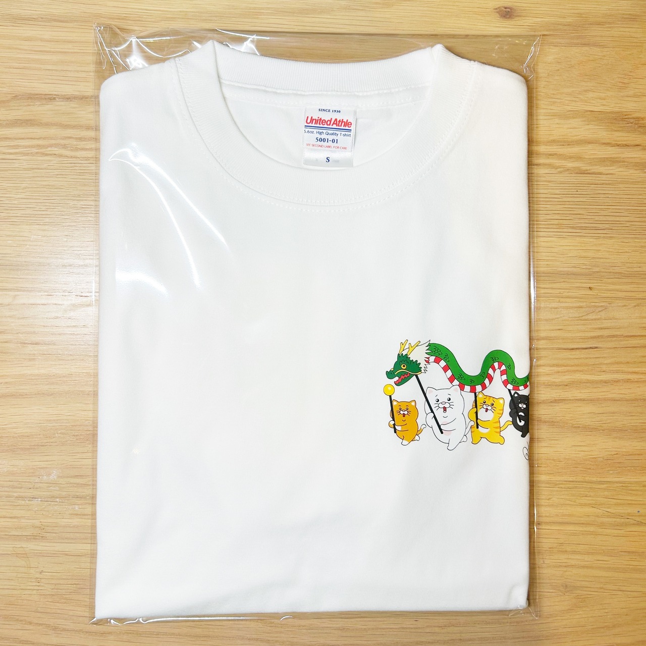 #おまがりねこのふっくTシャツ(龍踊たのしい)